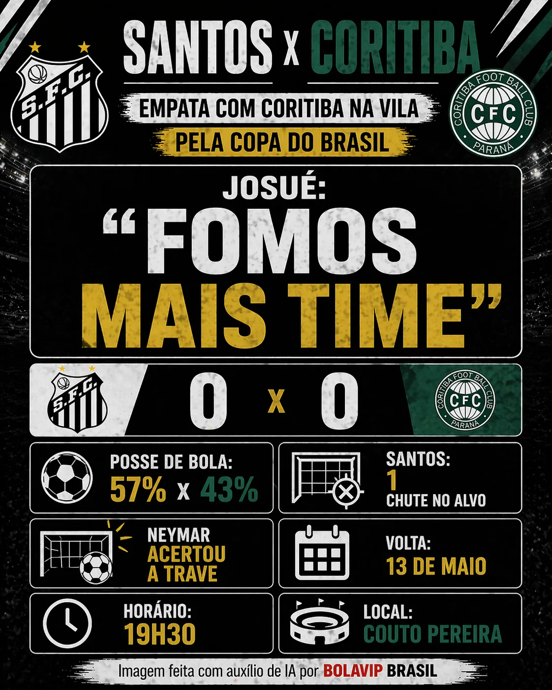 Josué analisa Santos 0 x 0 Coritiba pela Copa do Brasil