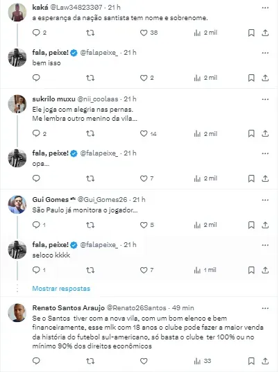 Os santistas foram à loucura com o lance genial da joia. Um golaço desse, mostra os recursos do Menino da Vila que ainda deve passar alguns anos na categoria de base.