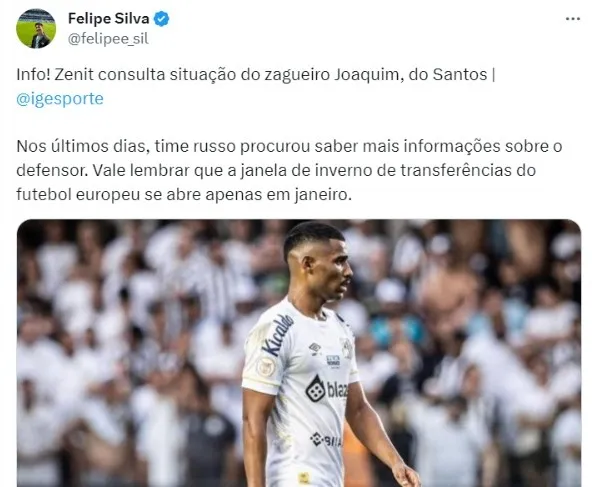 De acordo com informações do IG Esporte, a equipe fez uma consulta pelo zagueiro Joaquim. Nos últimos dias, o clube russo procurou saber condições de negócio pelo defensor, e avalia uma investida futura, quando o mercado se abrir em 2024, uma vez que por agora não podem ser feitas.