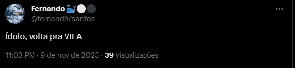 “Para de gracinha e manda o pré contrato pra ele assinar logo”, “bora agilizar pra trazer ele de volta logo” e “Volta logo pra casa”, foram alguns dos comentários santistas na redes sociais.