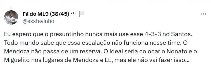 A última vez em que Miguelito esteve entre os convocados foi em julho, contra o Botafogo, ainda com Paulo Turra no comando técnico do Peixe. De lá para cá, o meia atuou com frequência pelo time Sub-20.