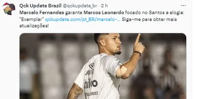 “Ele sabe muito bem o que está fazendo, trabalhando e buscando. Isso vai coroar o final de ano dele para ele ir para uma grande equipe”, continuou o técnico, reforçando que Marcos está focado em ajudar o Santos a se livrar do rebaixamento.