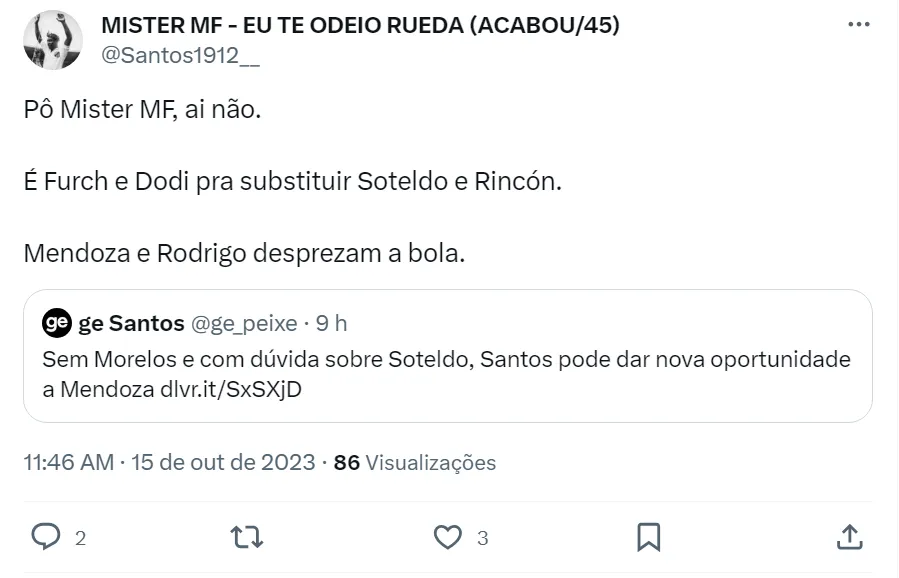 Essas escolhas de Marcelo Fernandes estão sendo criticadas pela torcida do Santos nas redes sociais. Os santistas acreditam que Mendoza e Fernández atrapalham o time e não podem ser titulares. Muitos torcedores apostariam em Dodi no meio-campo e Julio Furch ou Maximiliano Silvera no ataque. O curioso que as três vitórias do Santos aconteceram sem Mendoza e Fernández na equipe.
