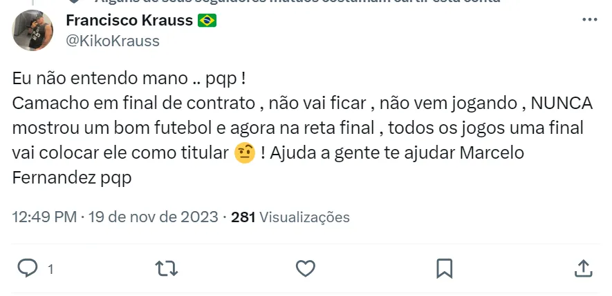 Porém, a torcida do Santos não gosta nada da ideia de Camacho ser titular e, ainda, improvisado na zaga. O volante é reserva no time do Peixe e vai deixar o Clube da Vila Belmiro ao término do seu contrato.