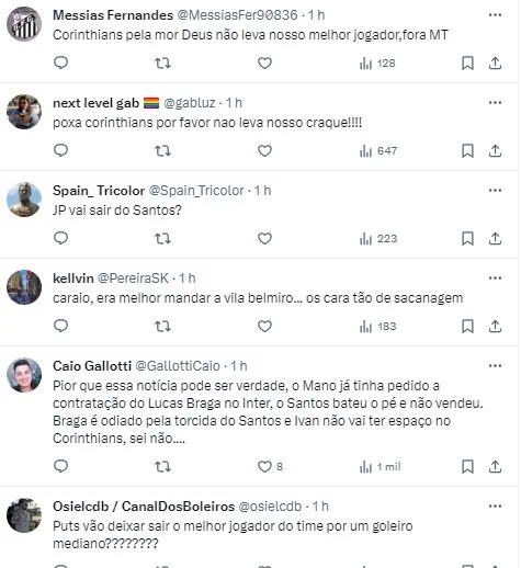 Segundo o jornalista, o Santástico procurou o Corinthians para uma possível contratação do goleiro Ivan, que integra o plantel do rival paulista, mas disputou a última temporada emprestado ao Vasco da Gama.