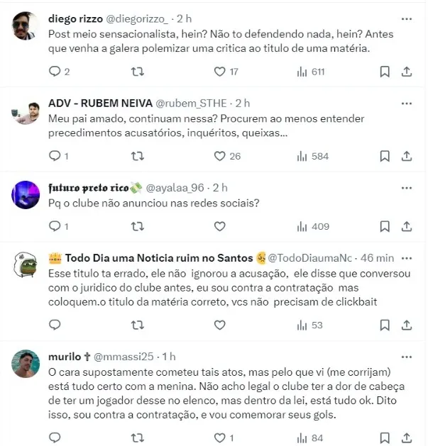 “O jurídico do clube avaliou muito bem. Tivemos um esclarecimento por parte do representante, do atleta e dos próprios envolvidos. Não creio que haja algum tipo de problema. Estamos muito focados na aquisição do jogador como uma forma também do caso esclarecido”, iniciou.