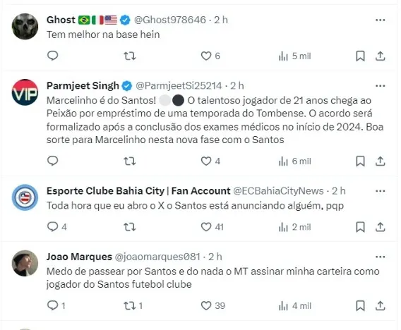 Trata-se de Marcelinho. O atacante, de 21 anos, chega ao Santos com um empréstimo de uma temporada junto ao Tombense. O contrato será assinado somente no dia 2 de janeiro, quando o então presidente Marcelo Teixeira toma posse.