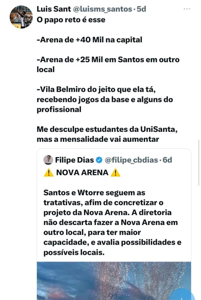 Lembrando que o Pacaembu deve ficar pronto em cerca de 2 meses, o Peixe já assinou uma carta de intenções para desenvolver uma parceria e mandar suas partidas no local. Em relação ao mercado santista, há possíveis chegadas e saídas sendo especuladas no Clube.