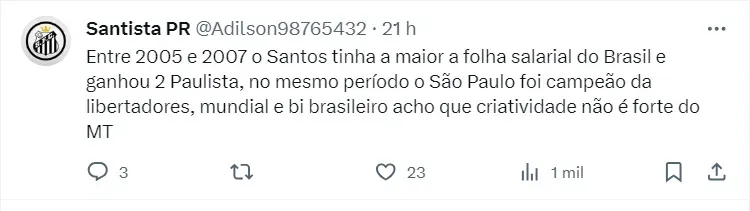A intenção dele, se eleito, é enxugar esse elenco e buscar por nomes fortes no mercado, como, por exemplo, citando a possibilidade de repatriar Gabigol, atualmente no Flamengo, utilizando valores hoje gasto com atletas que não tem o mesmo peso que o camisa 10. “O Santos tem uma folha salarial acima do Campeão da Libertadores (Fluminense) e tem 50 jogadores no seu plantel hoje”.