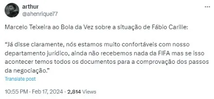 Depois de vários boatos, em entrevista à Rádio Bandeirantes, Marcelo Teixeira afirmou que o Santos não recebeu notificação da Fifa por caso Fábio Carille, acreditando não tem relação com a situação envolvendo V-Varen Nagasaki, do Japão.