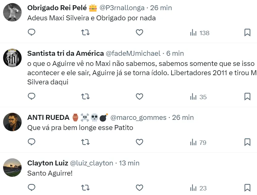 Reação dos santistas na web