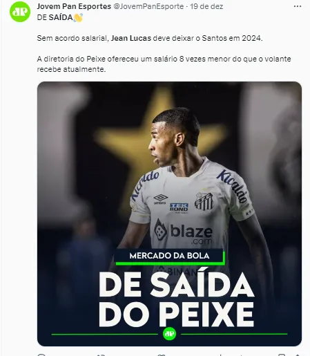 Um nome que também vem tendo uma saída quase dada como certa é o meio-campista Jean Lucas. Ele é alvo de alguns times e vem sendo especulado em algumas equipes do futebol brasileiro.