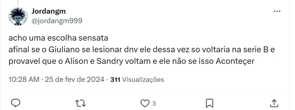 Vale reforçar que qualquer decisão do departamento de futebol é compartilhada por Carille e Gallo com o presidente Marcelo Teixeira. E a situação de Alison de momento é essa, até por seu período de reabilitação.