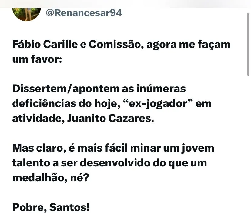 Juan Cazares é um dos reforços do Santos que ainda não se firmou na equipe titular e vem gerando desconfiança na torcida. O meia equatoriano, contratado no início da temporada, entrou em campo em 11 jogos, sendo titular em sete deles, e marcou apenas um gol. Desde o dia 31 de março ele não atua.