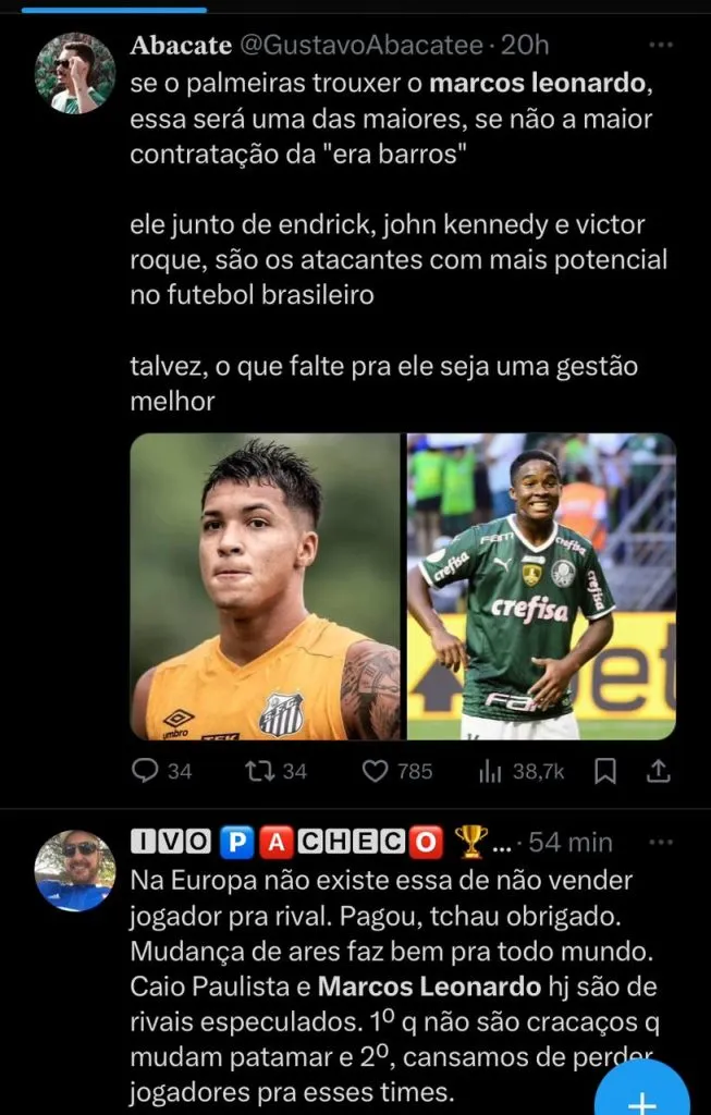 O Santos ainda recebe sondagens pelo atleta, porém, neste momento é de times inferiores a Roma, Newcastle e etc. Marcos Leonardo já deixou claro o desejo de jogar na Europa também.