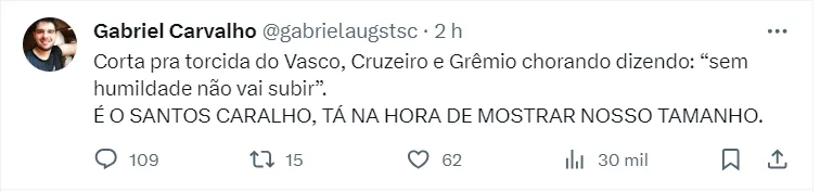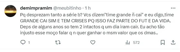 “Ele será o maior atrativo da Série B. Queremos entender o critério que faz essa distribuição, mas o Santos se posicionará por um valor justo e correto. Não pela temporada de 2024, mas por tudo que já fez”, apontou o mandatário.
