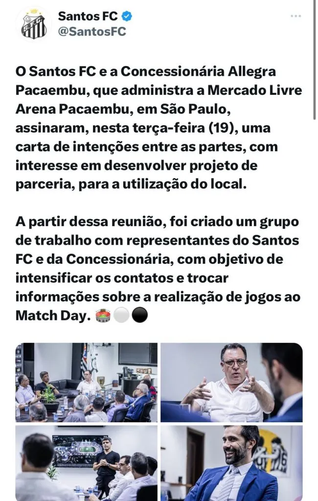 “Já estamos na fase final de algumas instalações, é um complexo muito grande. O Mercado Livre Arena Pacaembu cresce cada vez mais a cada canto. A gente está muito feliz com o andamento, está chegando a fase final”, disse. No dia 19 de abril, o local já voltará a receber o público para shows. Em relação aos jogos, ainda não se sabe uma data certa, mas o próprio Peixe já firmou uma carta de intenções de utilizar o local.