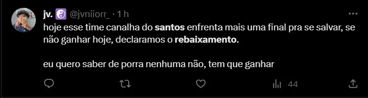 Que o Rei Pelé peça por nós lá no céu e que os atletas entendam que a Camisa do Peixe é pesada demais para estar no Z4.