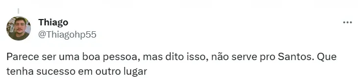 “Peço desculpas também pela minha desatenção em ter curtido um post ofensivo ao Santos. Acredito que todos já fizeram isso alguma vez, de curtir automaticamente alguma coisa sem entender direito o que é, no reflexo. Foi o que aconteceu. Peço desculpas. Não era minha intenção ofender ninguém, ainda mais a torcida do Clube que me fez sonhar acordado por 8 meses”, escreveu.