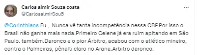Quem deu as caras e também se manifestou contra o árbitro Anderson Daronco foi o ex-presidente do Corinthians, Andrés Sanchez. Ele reclamou do juiz e cobrou uma punição severa ao árbitro da partida pela decisão no lance polêmico.