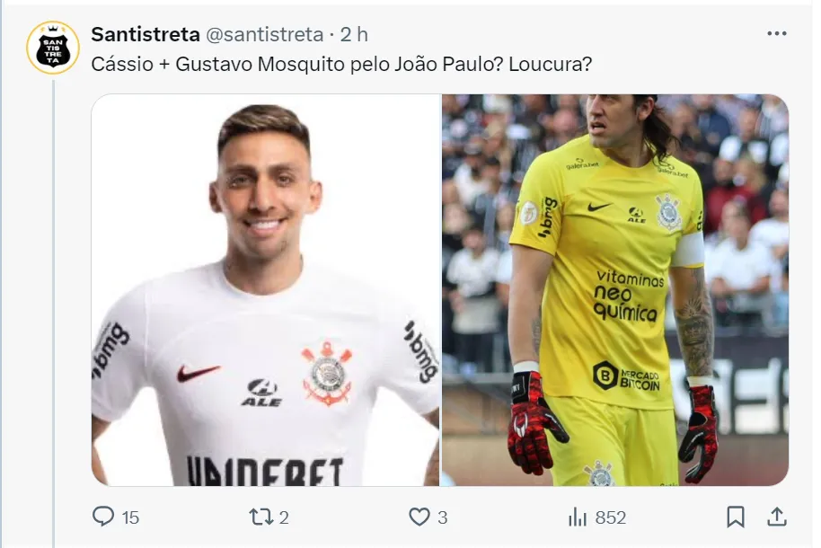 “Claro que eu sei que a possibilidade é ínfima, quase impossível de acontecer. Mas seria uma solução espetacular para todos os lados. O Corinthians seguiria a sua vida com Carlos Miguel. O Santos ganharia um ótimo reforço para o gol, já que João Paulo já teve mais moral com a equipe praiana”, completou Milton Neves em seu texto no UOL Esporte.