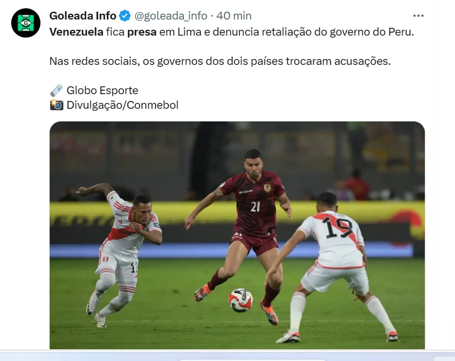 Além disso, a polícia peruana agrediu alguns jogadores venezuelanos na partida entre as duas seleções. O… pic.twitter.com/HVqGgBMfSM