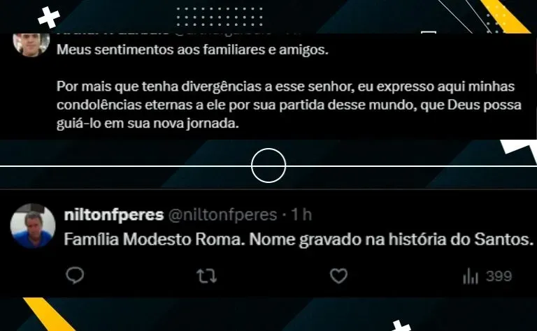 “O Santos Futebol Clube lamenta profundamente o falecimento do ex-presidente Modesto Roma Júnior. Presidente do Clube no triênio 2015/2017, inclusive com o bicampeonato paulista de 2015 e 2016, ele foi diretor do Peixe de 2004 a 2009, no mandato de Marcelo Teixeira, sendo um dos incentivadores do time de futebol feminino, as Sereias da Vila, que contou com a craque Marta, com vários títulos, entre eles o bicampeonato da Libertadores Feminina. O Santos FC decretou luto oficial de sete dias bandeira hasteada a meio mastro. Nossos sentimentos aos familiares e amigos”, publicou o Santos.