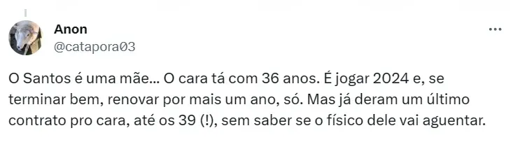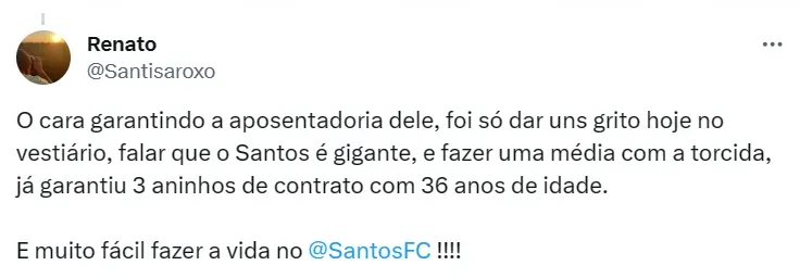 Por falar no capitão, o Santos encaminhou a renovação contratual do veterano. A informação foi publicada pelo portal iG Esporte, que acrescenta o tempo do novo vínculo do jogador com o Peixe: até o fim de 2026.