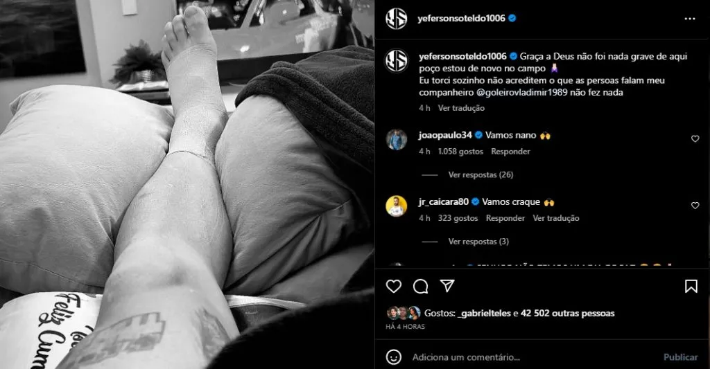 Inicialmente, a versão que tinha sido divulgada nas redes sociais seria que o venezuelano teria sofrido a lesão após uma disputa de bola com o goleiro reserva Vladimir, que não tem muito prestígio com a maioria dos santistas. O fato gerou reclamações nas redes sociais, mas Soteldo se pronunciou e tratou de ‘inocentar’ o arqueiro.