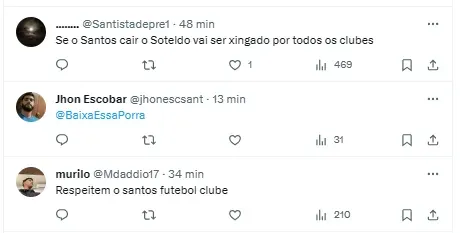 Sobretudo, o lance deu o que falar nas redes sociais e torcedores do Peixe comentaram sobre a situação. Apesar da polêmica, tanto o Santos quanto a torcida estão aliviados pelo empate no clássico.