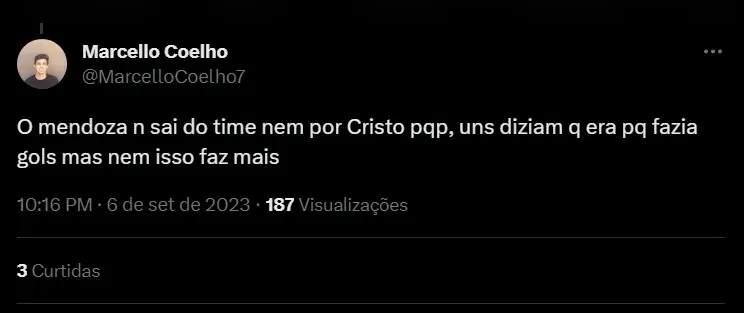 Entretanto, algumas escolhas do comandante vêm se tornando alvo da torcida. Isso porque, de acordo com informações do jornalista Vagner Frederico, Diego Aguirre fará algumas mudanças no elenco do Santos visando o próximo confronto do Brasileirão. Mas, apesar de realizar algumas alterações, a permanência de Mendoza na equipe causa insatisfação no torcedor.