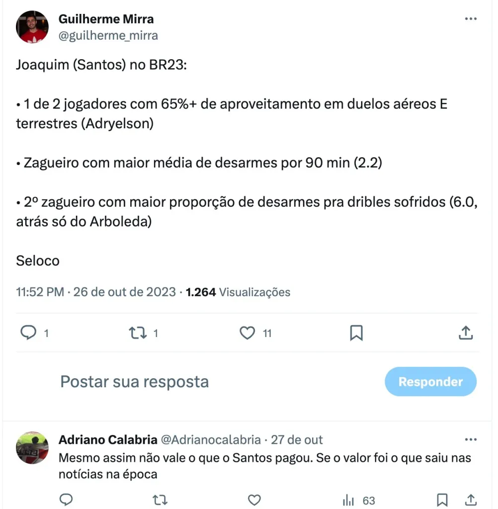 Joaquim está garantido no Peixão em 2024 salvo uma grande proposta do exterior. Ele segue evoluindo jogo após jogo na Vila Belmiro e virou titular absoluto do time de Marcelo Fernandes.