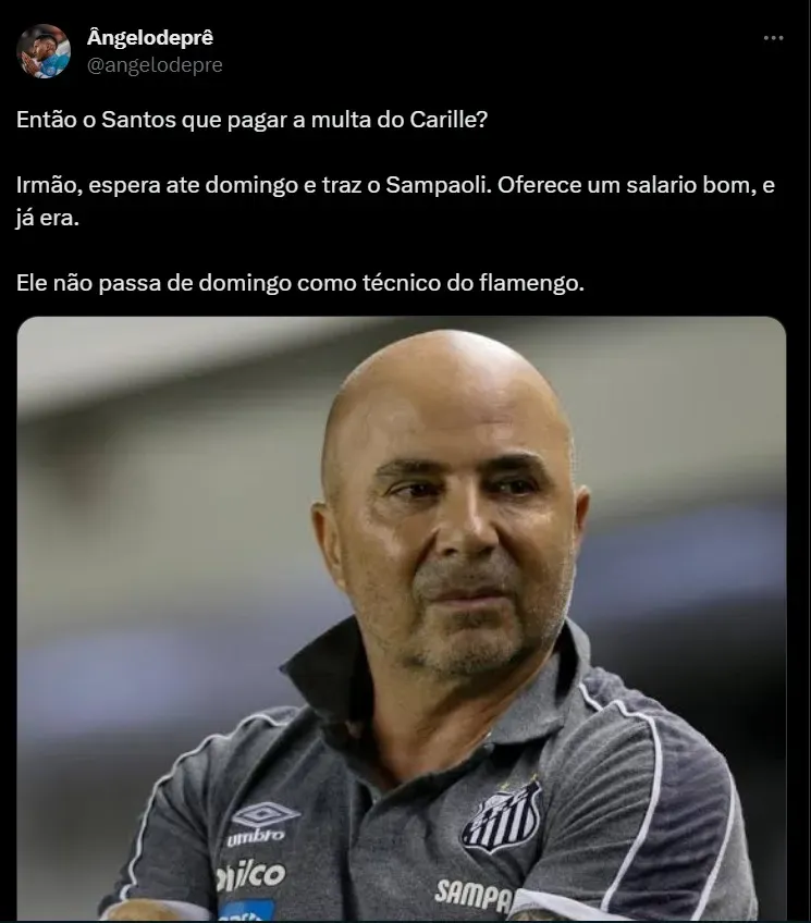 “Aparentemente está sem clube, a frase é: ‘eu só não vou te dizer porque se não te deixaria muito na cara do gol’. (…) Eu já ouvi descartes de Mano Menezes, Fábio Carille, Mauricio Barbieri, Roger Machado, Vagner Mancini, Cuca. Todos esses já foram desmentidos. O Santos está chegando a conclusão que será difícil uma contratação, por isso que nesse momento a tendência é efetivar o Marcelo Fernandes. Mas não está descartado que o Santos anuncie um técnico até o sábado. Após esse prazo, Marcelo Fernandes é o técnico”, concluiu.