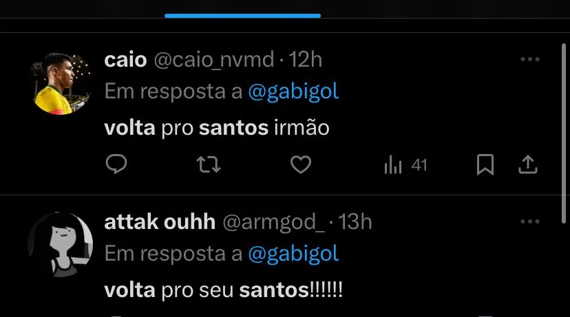 Para alguns santistas, Gabigol ainda tem potencial para retornar ao time da Vila Belmiro: (SIC) “Volte pro seu Santos”; “Volta pro Santos irmão”, foram alguns dos comentários do torcedor santista para o eterno Menino da Vila.