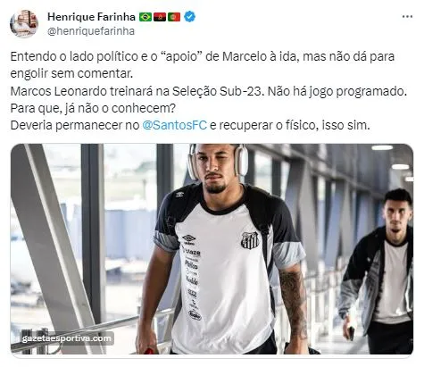 O Menino da Vila foi convocado para uma bateria de treinos da Seleção Brasileira Pré-Olímpica, que vai se preparar no CT do Corinthians. Contudo, Marcelo Fernandes foi direto ao ponto e revelou qual a postura do Santos sobre a ausência de Marcos Leonardo.