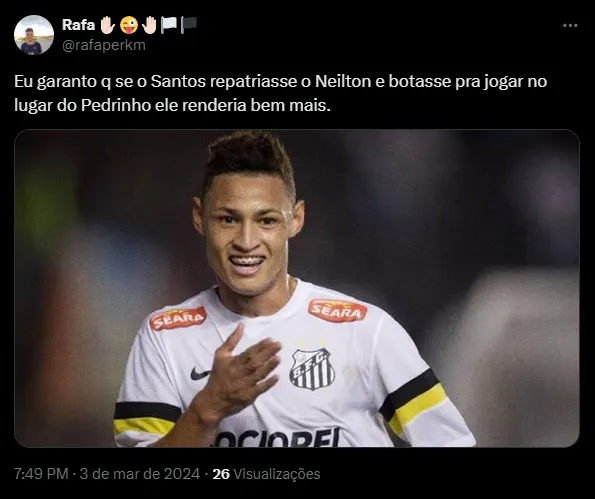 “Eu garanto que se o Santos repatriasse o Neilton e botasse pra jogar no lugar do Pedrinho ele renderia bem mais“, “Ver o Pedrinho como jogador do Santos é de sangrar os olhos” e “Pedrinho horrível. Vaza do Santos, imediatamente“, foram alguns comentários.