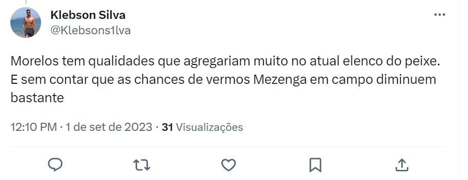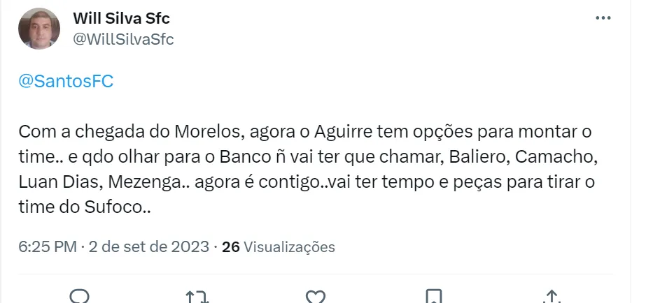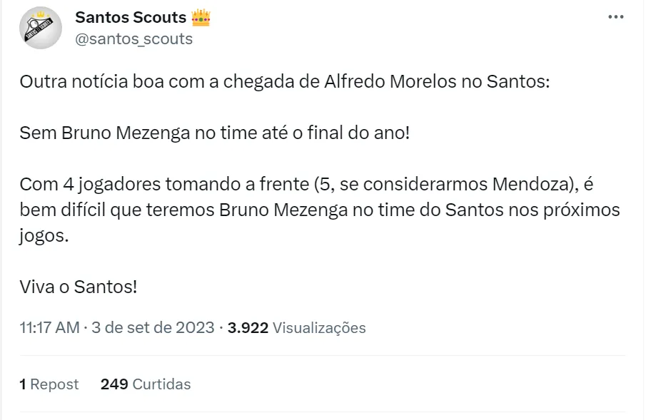 Atualmente, o treinador Diego Aguirre vem utilizando Marcos Leonardo na função de camisa 9 e Julio Furch como opção no banco de reservas. Além disso, os atacantes Maximiliano Silvera e Mendoza também podem atuar mais centralizado. Com a chegada de Morelos, a torcida do Peixe acredita que o contestado atacante Bruno Mezenga não vai mais jogar pelo Santos (como pode ser visto nos tweets acima).