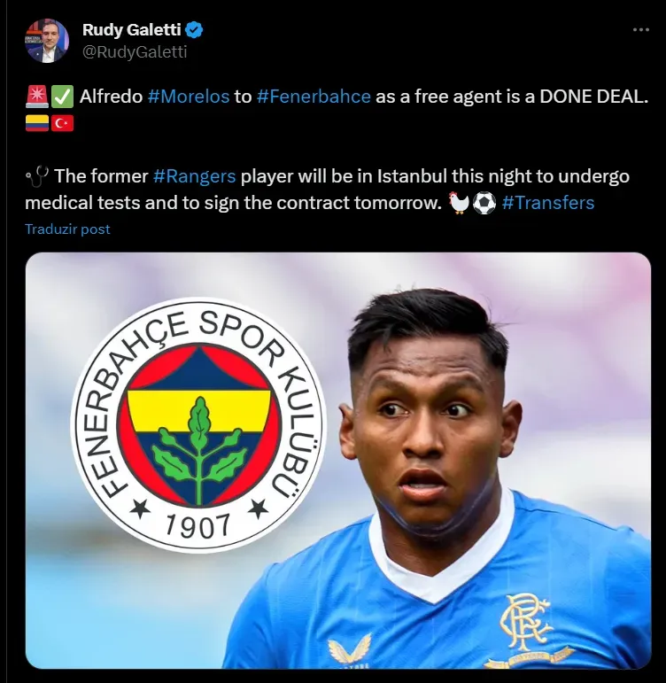 Agora, um dos nomes mais sondados pelo Alvinegro Praiano definiu seu futuro. Conforme informações do jornalista Rudy Galetti, Alfredo Morelos será jogador do Fenerbahçe, da Turquia. O atacante colombiano era um dos sonhos de Rueda na janela de transferências. A equipe paulista chegou a tratar questões salariais com o atleta, mas sua pedida era muito alta para o nível brasileiro.