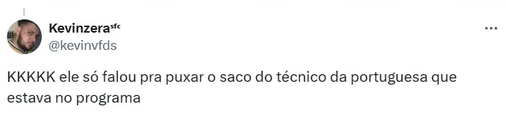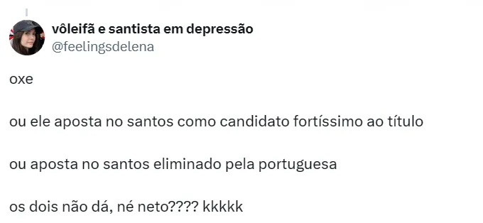 “A Portuguesa ganha. Classifica nos pênaltis. Quer apostar uma pizza? Vai dar Portuguesa”, disse o apresentador, em tom de brincadeira. Na próxima rodada e última rodada, Santos joga em casa e a Lusa joga fora.