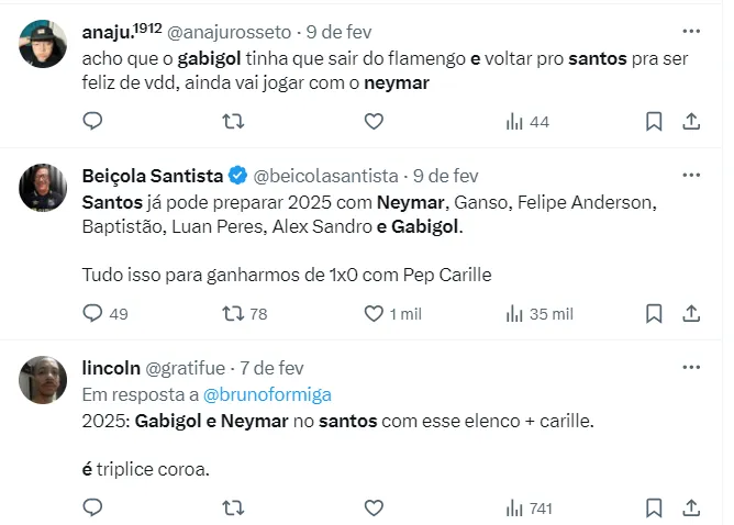 Ainda de acordo com o jornalista, existe uma forte possibilidade de Neymar desembarcar do Peixe antes da copa: Ele chegaria em meados de 2025 para jogar no Santos até o início da Copa do Mundo, disputaria a Copa do Mundo e o futuro a Deus pertence”, enfatizou.