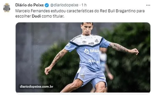 Segundo apuração do portal Diário do Peixe, o volante Dodi será acionado entre os 11 titulares. A decisão do comandante do Santos foi cravada após intenso estudo sobre a forma como o Red Bull Bragantino atua. Após se reunir com a equipe de análise do departamento de futebol, algo que ocorreu fora do período de treinos, Dodi foi avaliado com as melhores características para integrar o meio-campo santista nesta noite (19). Tal estratégia, de analisar o adversário para surpreender, foi utilizada na vitória do Peixe por 2 a 1 contra o Palmeiras.