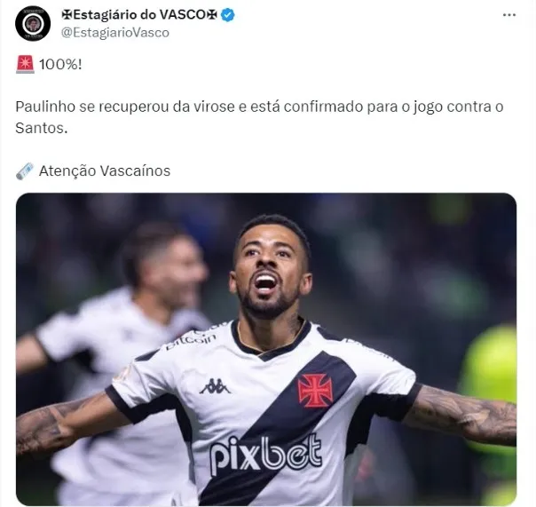 De acordo com informações do site atenção vascaínos, o volante Paulinho de Paula está confirmado para enfrentar o Santos. Ele era encarado como uma dúvida por conta de uma virose, mas estará a disposição do técnico Ramon. Desde sua chegada, o jogador tem sido um dos principais destaques do time que conseguiu resultados importantes nas últimas rodadas e subiu na tabela de classificação.