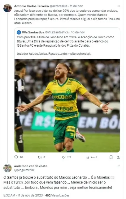 Nessa linha, todo mundo do Peixe está ciente que provavelmente perderá Marcos Leonardo em 2024. Pensando no substituto, porém, a tendência é que a diretoria aposte nas peças do atual elenco ao invés de ir ao mercado.