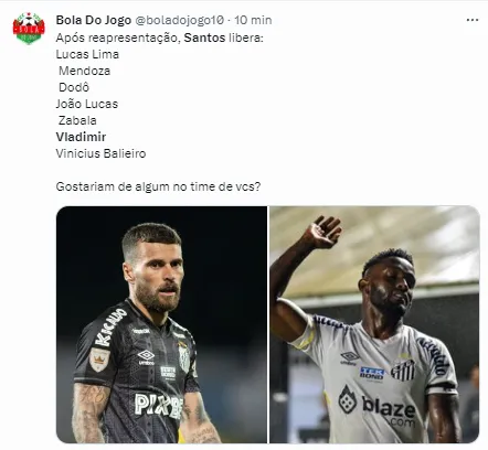 A situação mais encaminhada é a do goleiro Vladimir. Ele já foi alvo de muitas críticas no ano passado e deve acertar sua saída do Santos. Ele já tem acordo para voltar ao Avaí neste ano.