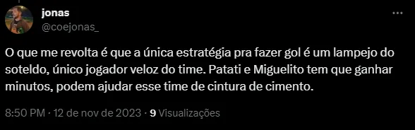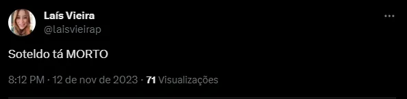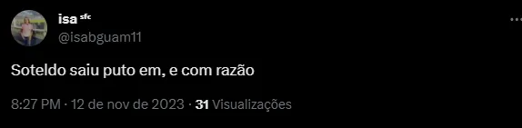 “Soteldo saiu puto e com razão”, “O Soteldo CANSADO”, e “Soteldo tá MORTO”, foram alguns comentários dos santistas, que até ficaram satisfeitos com o ponto conquistado na Vila Belmiro.