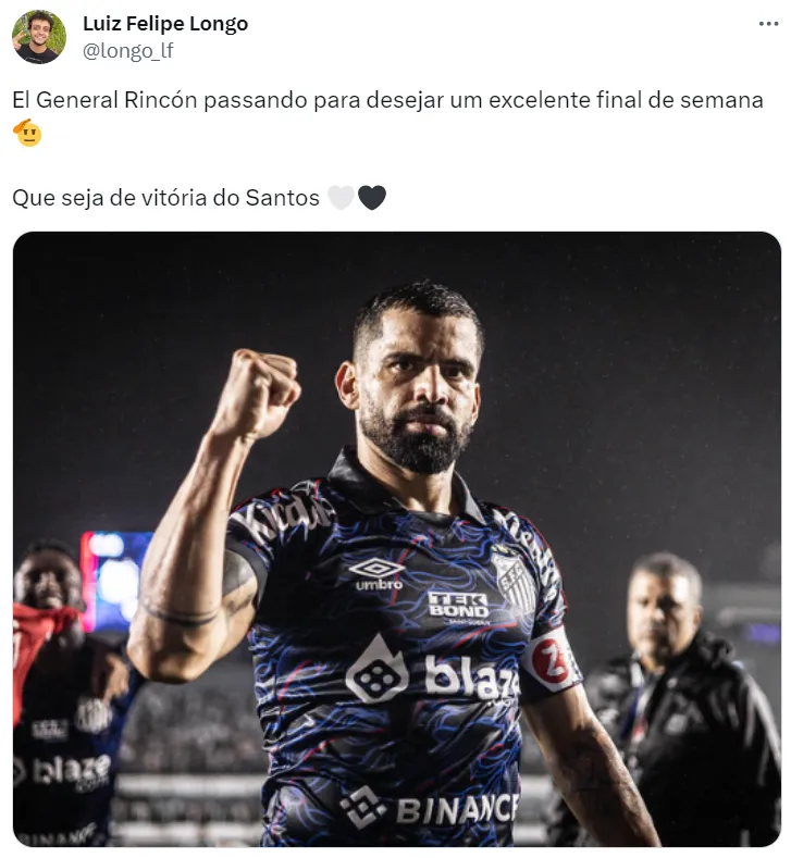 Trata-se de Tomás Rincón, volante venezuelano e capitão do Santos. Jogador destaque na retomada do Peixe no Campeonato Brasileiro, o atleta vem sendo sinônimo de bons resultados no Peixão.