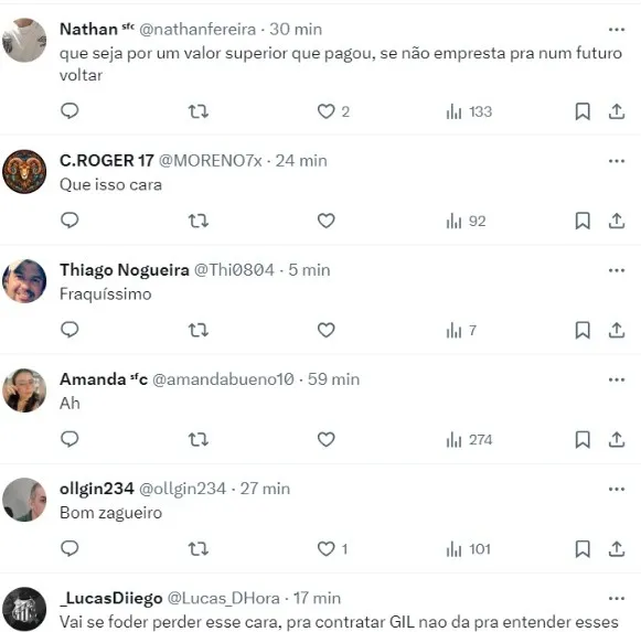 Com endosso de Fábio Carille, as conversas entre Santos e o experiente zagueiro Gil de 36 anos, evoluíram. Em 2023, pelo Corinthians o zagueiro atuou em 61 jogos, fez quatro gols e distribuiu cinco assistências.