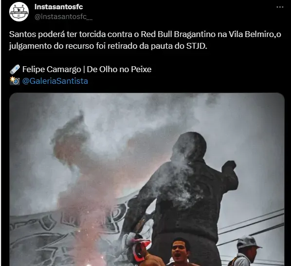 Vale destacar que no dia 14 de setembro, o primeiro julgamento no órgão puniu o Santos com dois jogos de portões fechados na Vila Belmiro e multa de R$ 36 mil. O Peixe recorreu e conseguiu efeito suspensivo para ter os torcedores no confronto contra o Vasco, vencido por 4 a 1. Por hora, o efeito segue valendo e por enquanto, o Santos poderá contar com torcida contra o Bragantino.