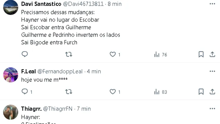 – Dedicar o gol a minha esposa e a toda família. Nos planejamos para um grande jogo. Tivemos as melhores chances. É manter a equipe equilibrada e propondo o jogo para sair daqui com a vitória.