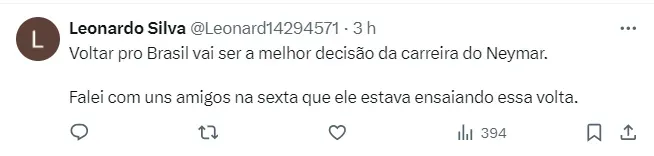 É uma via de mão dupla. Neymar retornando, talvez, o ano que vem para o Brasil, tornaria também seu futebol mais competitivo, já que hoje o craque está inserido em um clube da liga saudita. Com 32 anos, é bem provável que a Copa do Mundo de 2026 seja a última do ídolo santista com a camisa da Seleção Brasileira e ele precisa estar em plena forma.